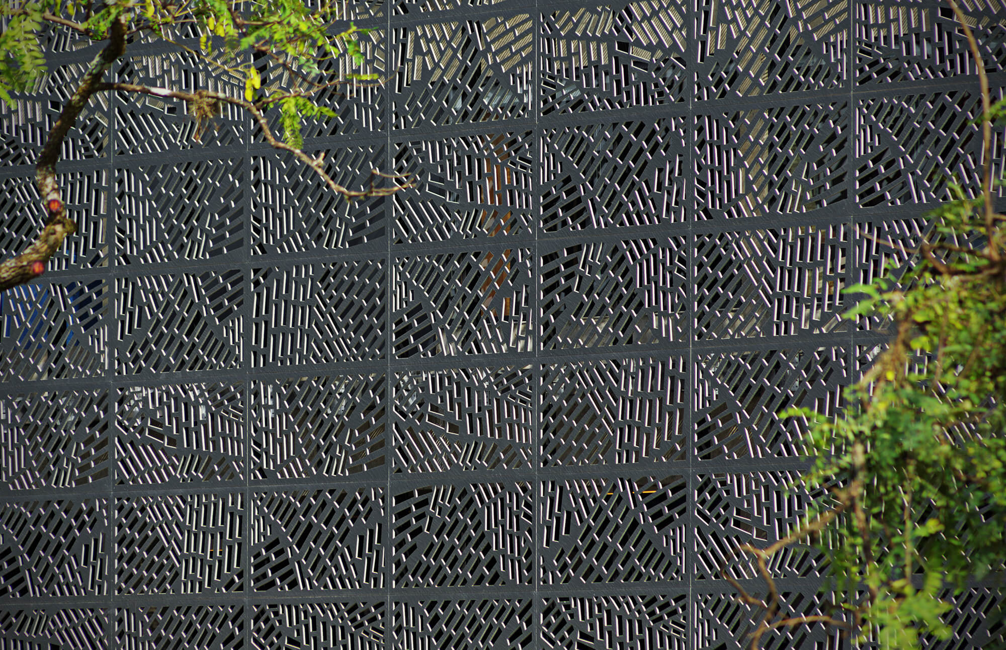 Estes dois volumes são construídos com acentuado caráter tectônico – alternando opacidade, transparência e translucidez – e contrastam com o caráter estereotômico dos patamares definidos por pesados muros de gabiões, ora construídos como arrimos, ora desenhados como fechamentos para os estacionamentos e áreas técnicas.