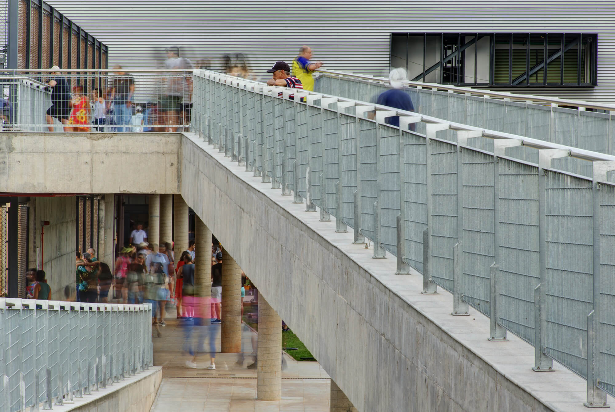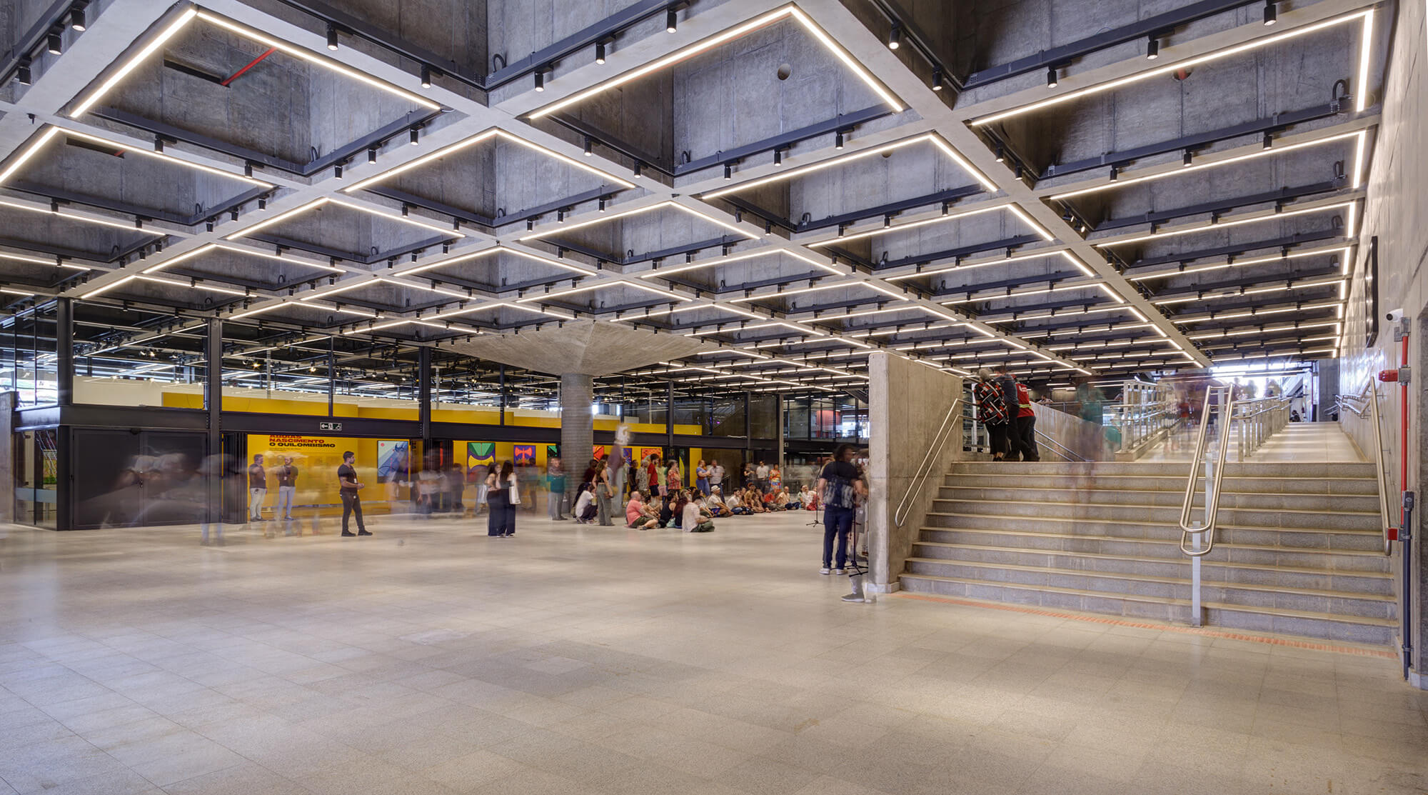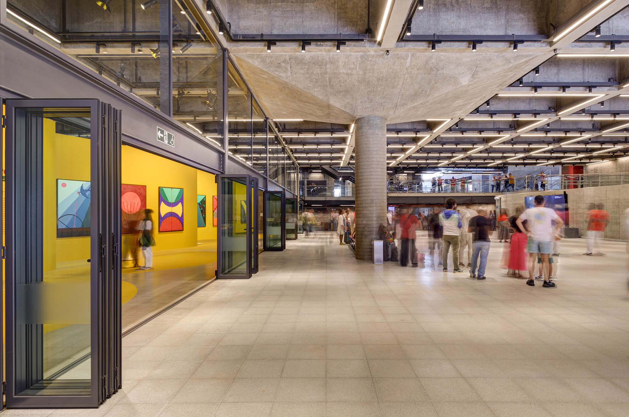 A ele se somam as circulações abertas – passarelas e escadas – que multiplicam as possibilidades de circulação pelo edifício, ao mesmo tempo em que articulam os diversos níveis e programas.